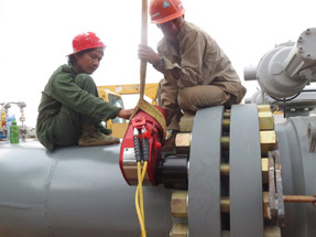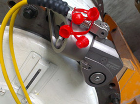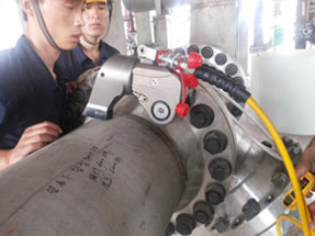 聚頂機械針對化工廠裝備公司的情況,派遣了有現場經驗的技術員前往查看,現場工況相對不是很復雜,標配的液壓扳手就能解決,但也存在較為特殊的情況,如法蘭連接處不是平面,夾角不是垂直或者工作空間狹小等情況,聚頂機械公司從用戶的角度出發(fā),給出的解決方案不光滿足工作要求