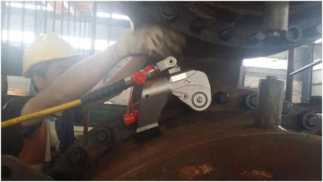 聚頂機械針對化工廠裝備公司的情況,派遣了有現(xiàn)場經(jīng)驗的技術(shù)員前往查看,現(xiàn)場工況相對不是很復(fù)雜,標(biāo)配的液壓扳手就能解決,但也存在較為特殊的情況,如法蘭連接處不是平面,夾角不是垂直或者工作空間狹小等情況,聚頂機械公司從用戶的角度出發(fā),給出的解決方案不光滿足工作要求,還要為客戶節(jié)約成本,所以針對化工廠裝備公司常規(guī)以及特殊的現(xiàn)場情況聚頂機械公司采用一套液壓扳手就能解決全部問題的方案,得到客戶的高度認(rèn)可。由于現(xiàn)場工人不會使用液壓扳手,聚頂機械技術(shù)人員就手把手教操作人員,直到都能熟練操作為止,同時在現(xiàn)場工人的要求下,用液壓扳手裝配一套壓力容器,最后還要加水打壓檢測是否泄漏,一切都超出了工人們的預(yù)料,大家都說以后有了液壓扳手他們心里有底多了,以后就不再全部依賴“風(fēng)炮”了,技術(shù)主管人員也說使用液壓扳手后交付給客戶的產(chǎn)品,他們就放心了。
