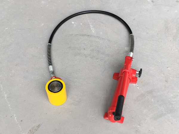 5、使用時(shí)先將手動(dòng)泵的快速接頭與頂對(duì)接,然后選好位置,將油泵上的放油螺釘旋緊,即可工作。將放油螺釘旋松,油缸卸荷。